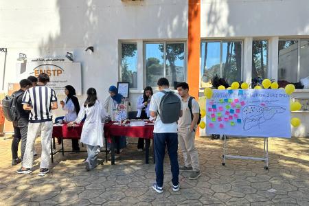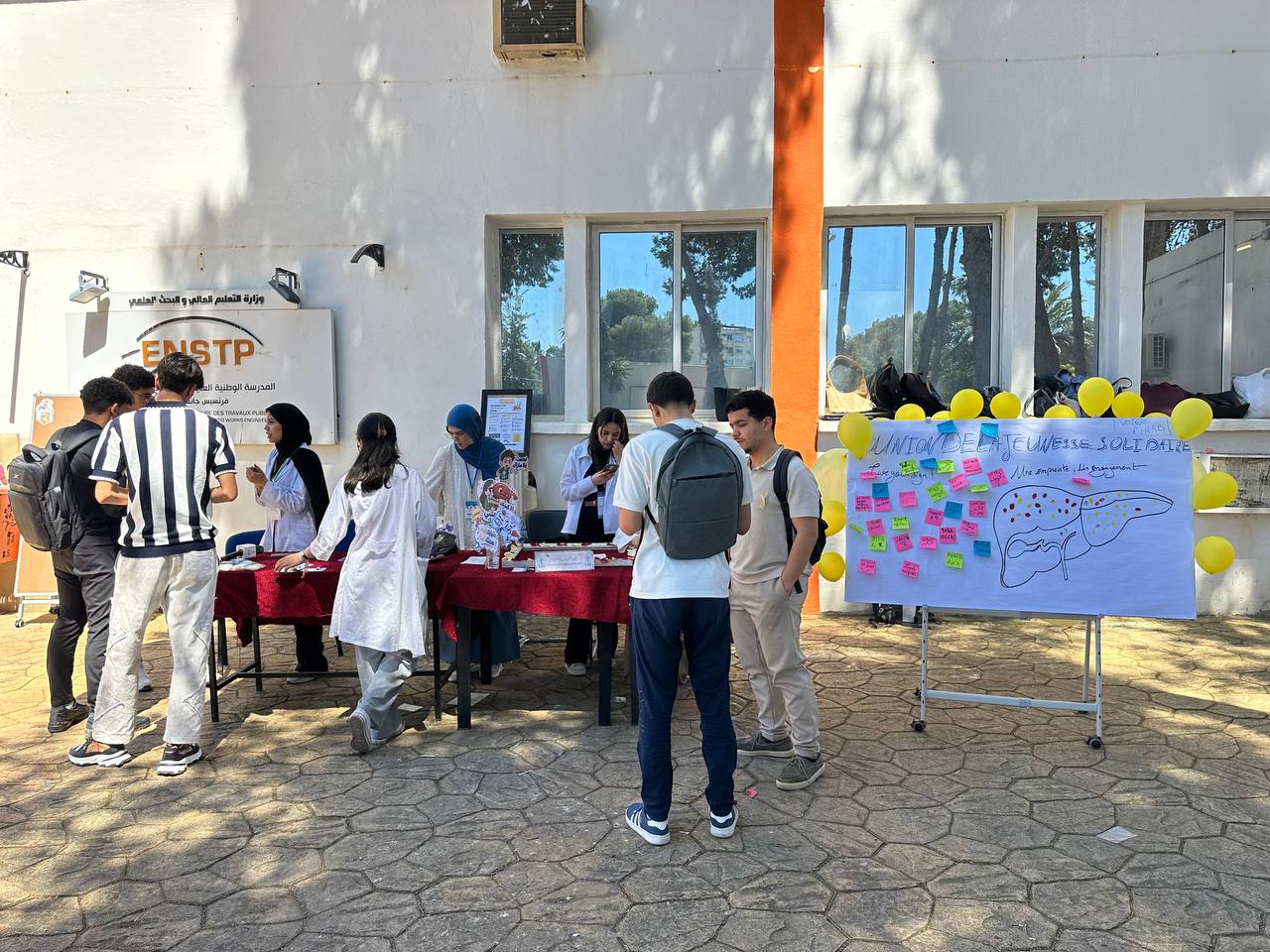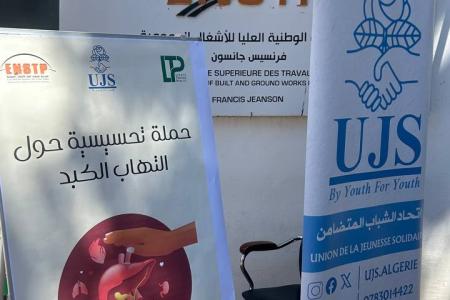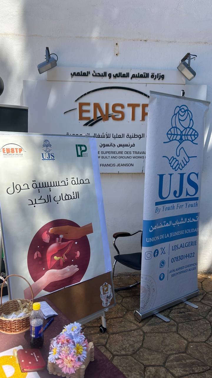 Under the supervision of the Director of the National Higher School of Built and Groundworks Engineering and the Secretary General, and within the framework of promoting community-based health activities, the Service of Scientific, Cultural and Sports Activities (ENSTP), in coordination with LTP Club (Leader Des Travaux Publics) UJS Association (Union des Jeunes Solidaires), organized an awareness and information day on “hepatitis”, with the aim of enhancing health awareness within the students community.