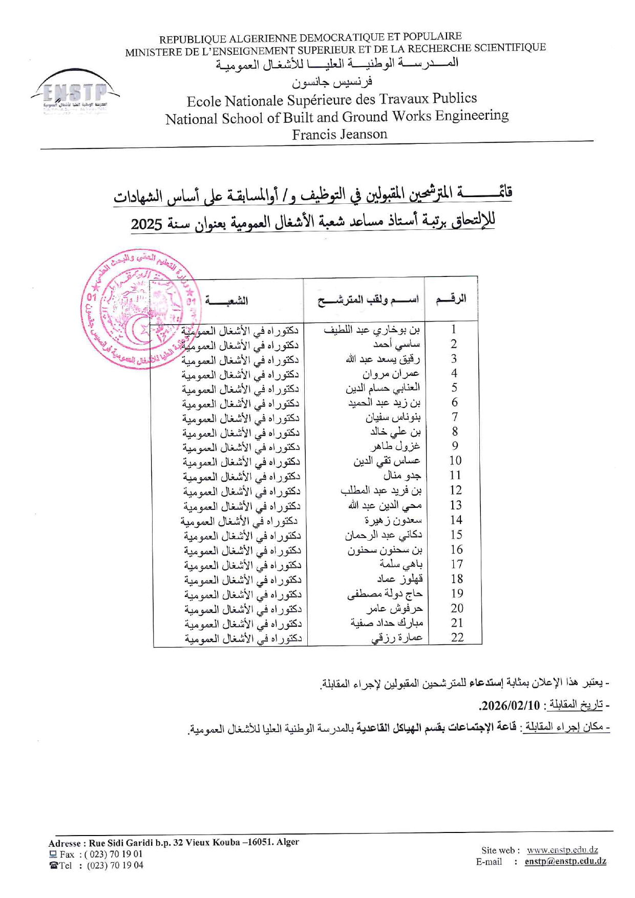 List of accepted and rejected candidates in the recruitment competition for the position of Assistant Professor