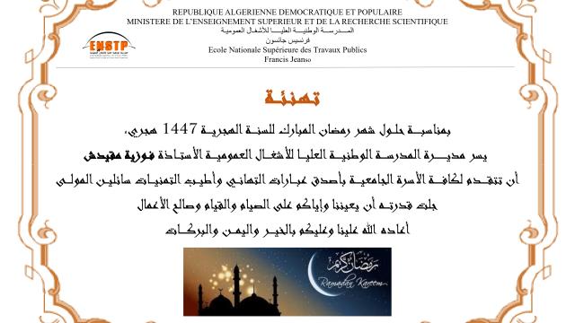 The Administration of the National Higher School of Built and Groundworks Engineering extends its warmest congratulations to the student who