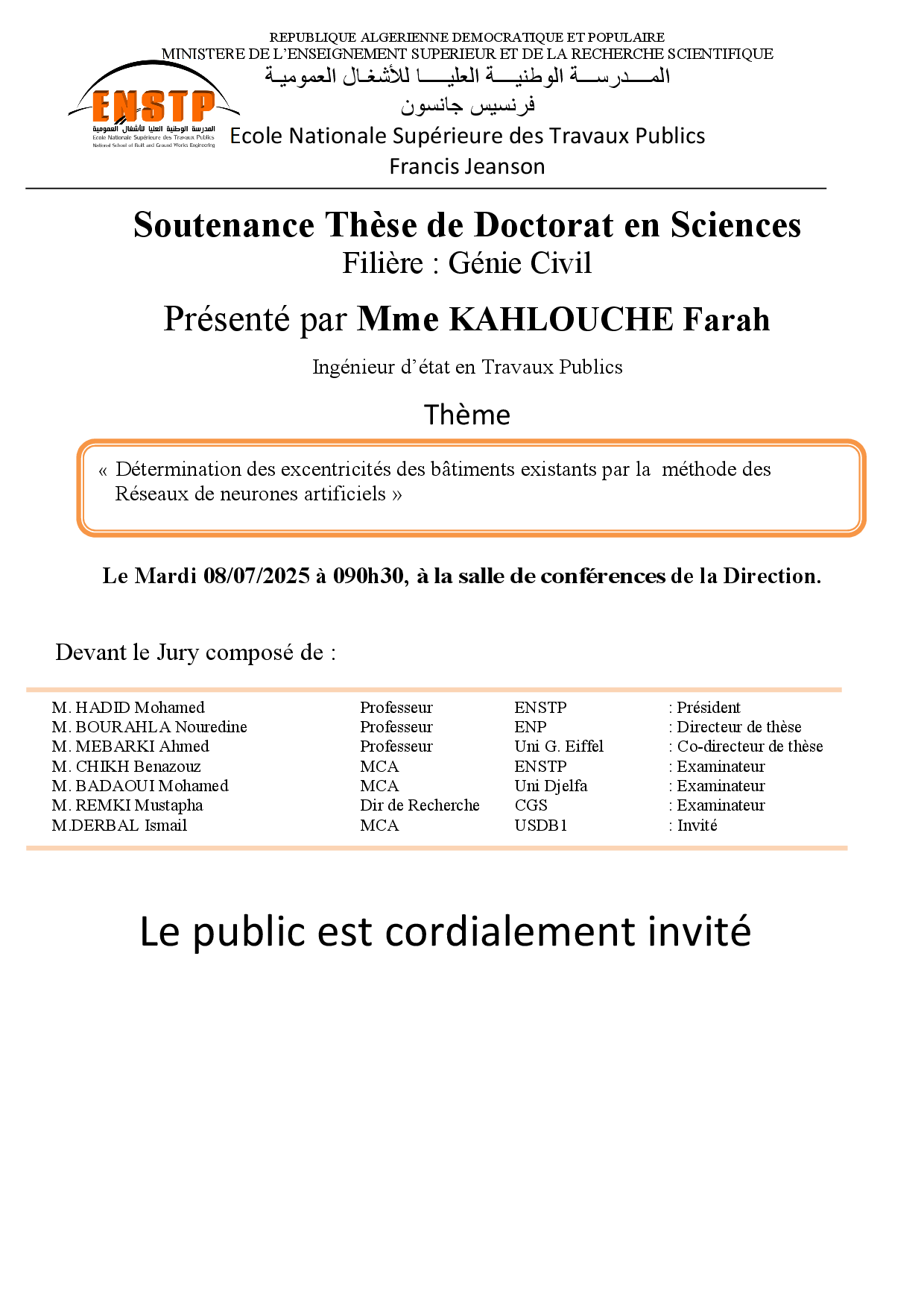 Soutenance Thèse de Doctorat en Sciences - Mme KAHLOUCHE Farah -
