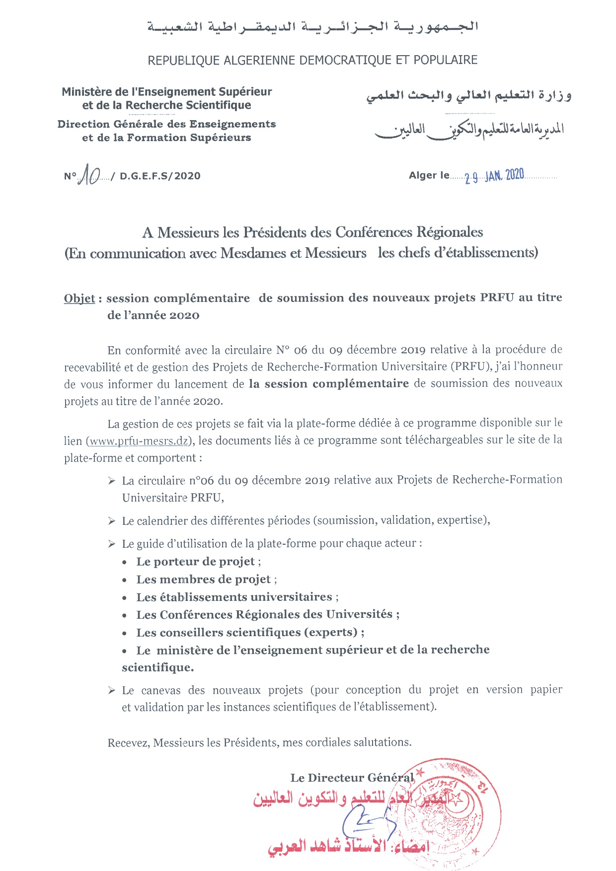 Appel à la soumission des nouveaux projets session complémentaire 2020