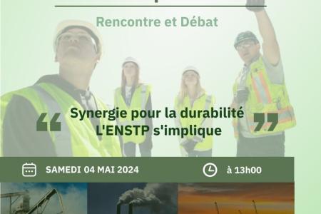 Dans le cadre du « Café de l'Entrepreneuriat de l'ENSTP », une réunion-débat s'est tenue ce samedi 04 mai 2024, sous le thème "La synergie pour la durabilité : l'ENSTP s'implique". La directrice de l'ENSTP a introduit la session en soulignant l'engagement continu de l'institution envers les défis environnementaux actuels, en orchestrant cette rencontre avec ses partenaires du secteur des travaux publics.