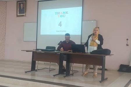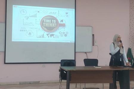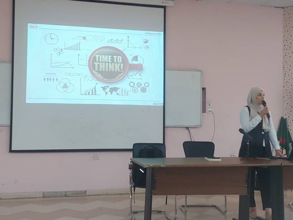 En tant que membre de l’incubateur de l’ENSTP, Madame SAADI Samira a présenté des exemples concrets de porteurs de projets de l’ENSTP qui ont réussi leurs paris et a incité les élèves à poursuivre leurs idées jusqu’au bout.