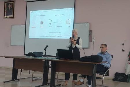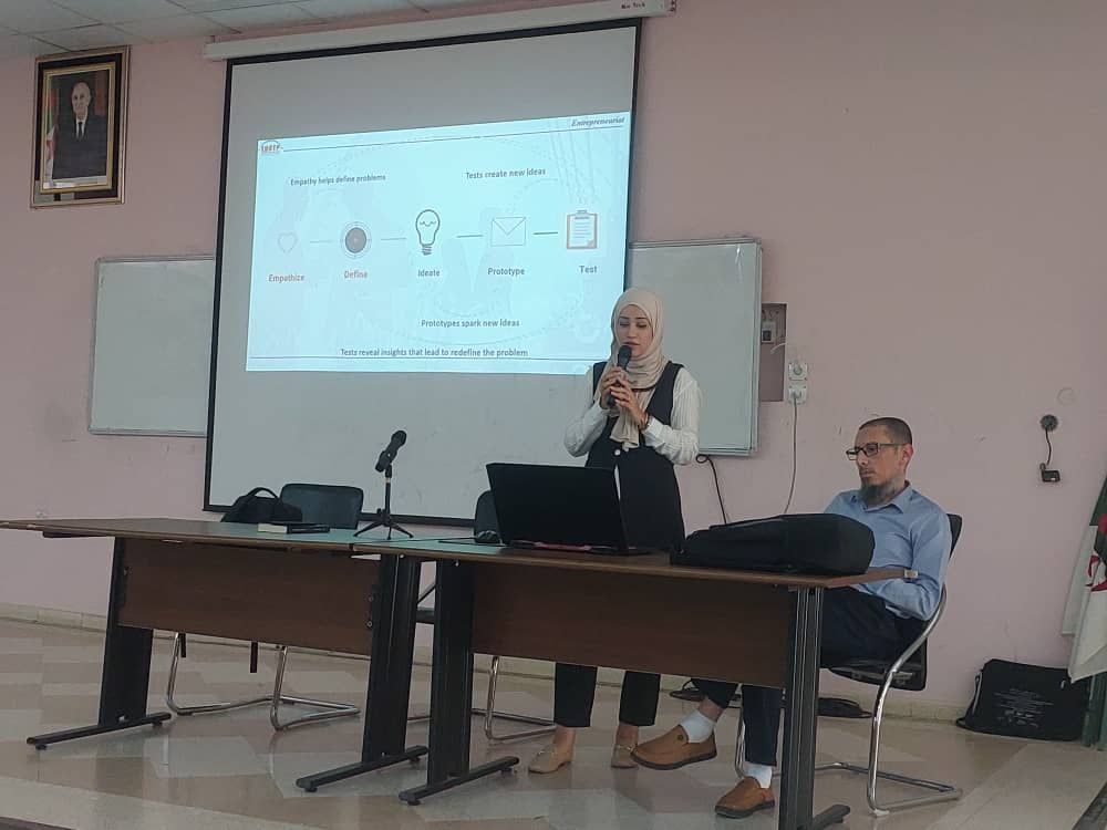 En second lieu, Madame LARBI Selma, membre de l’incubateur de l’ENSTP, a abordé l’idée du « design thinking » dans la génération de l’idée innovante à travers la définition des problématiques existantes, l’identification des besoins des clients et la réussite dans la proposition de solutions optimales. À la fin de son intervention, elle a illustré ses propos par des exemples de solutions techniques et écologiques possibles dans le domaine des travaux publics.