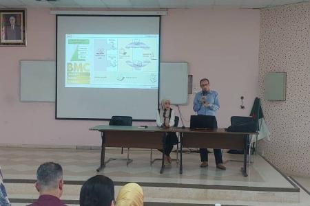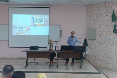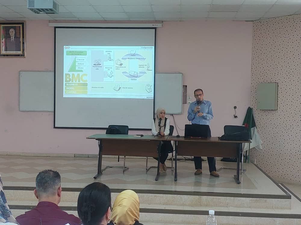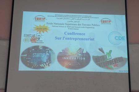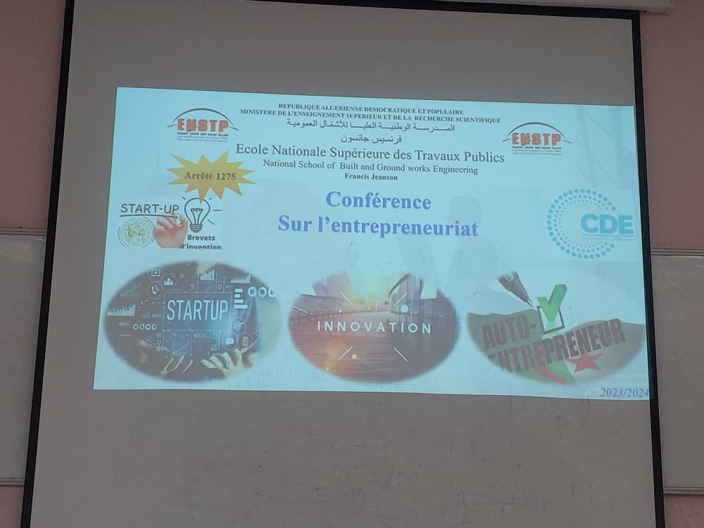 Monsieur TAFRAOUT Salim, responsable de l’incubateur de l’ENSTP, a donné un aperçu sur la définition des start-up, leurs caractéristiques spécifiques ainsi que les éléments qui les différencient des micro-entreprises. Il a ensuite exposé les démarches administratives nécessaires à la création d’une start-up et a précisé les différents partenaires qui peuvent être associés à ce type de projet, ainsi que les paramètres du business-model à définir dans cette optique.