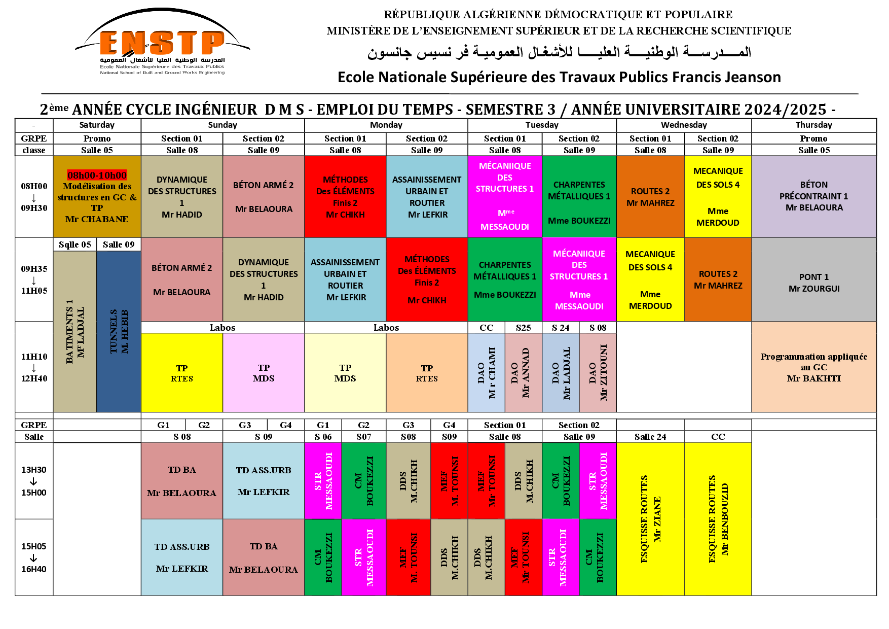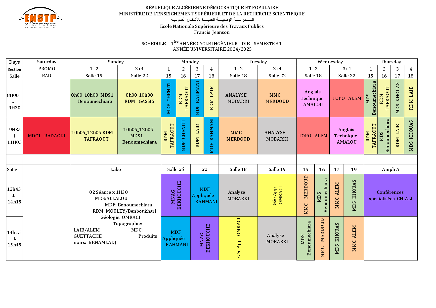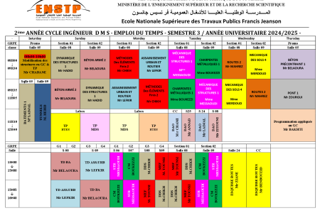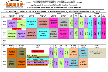 Emplois de temps année universitaire 2024/2025