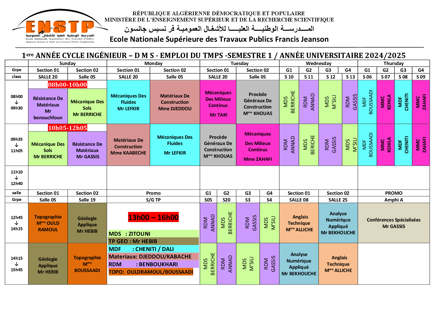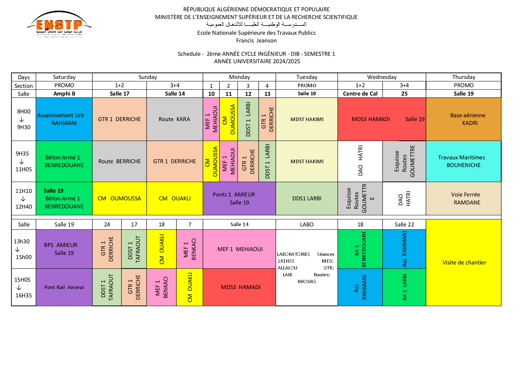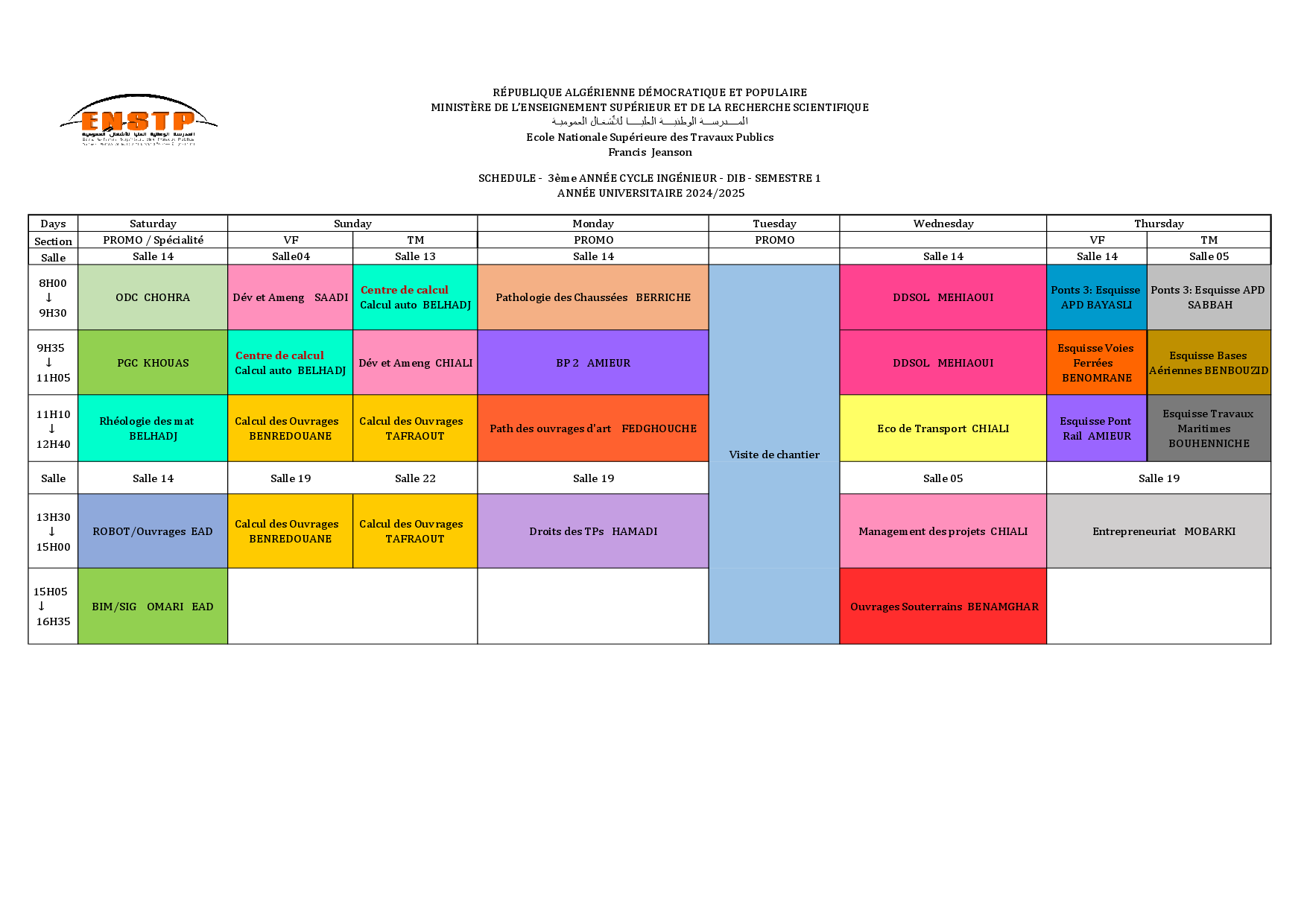 Emplois de temps année universitaire 2024/2025