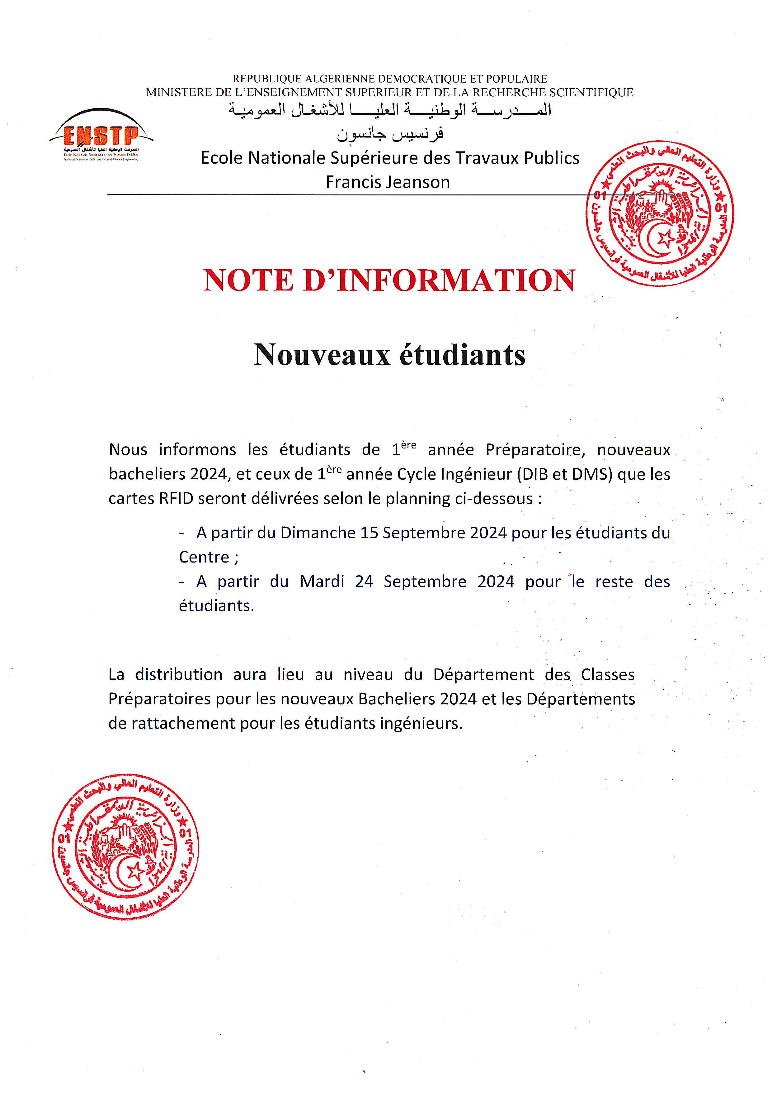 Note d'Information Nouveaux étudiants (Distribution cartes RFID)
